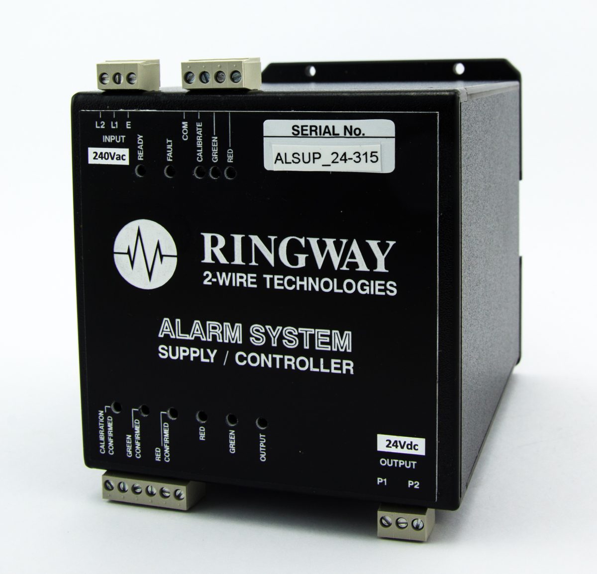 When used in conjunction with AL24X2O / AL24X3O alarm units, a two tone audible alarm is sounded at each alarm site, while ever the controller ‘red’ input is energized. With the 24V output model, up to 55 units can be connected at 100m intervals on 5mm2 cable to provide ‘overlapping’ performance (as required by AS/NZS 4024) over the entire length of a 5.5km conveyor. Greater distances and more alarms can be covered with the 48V version.